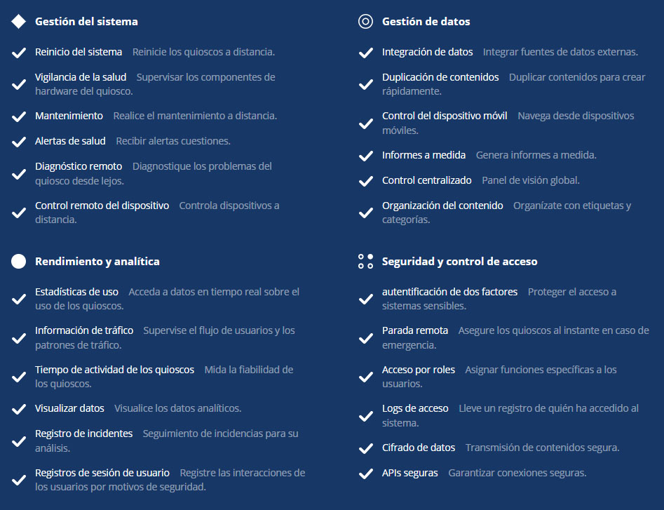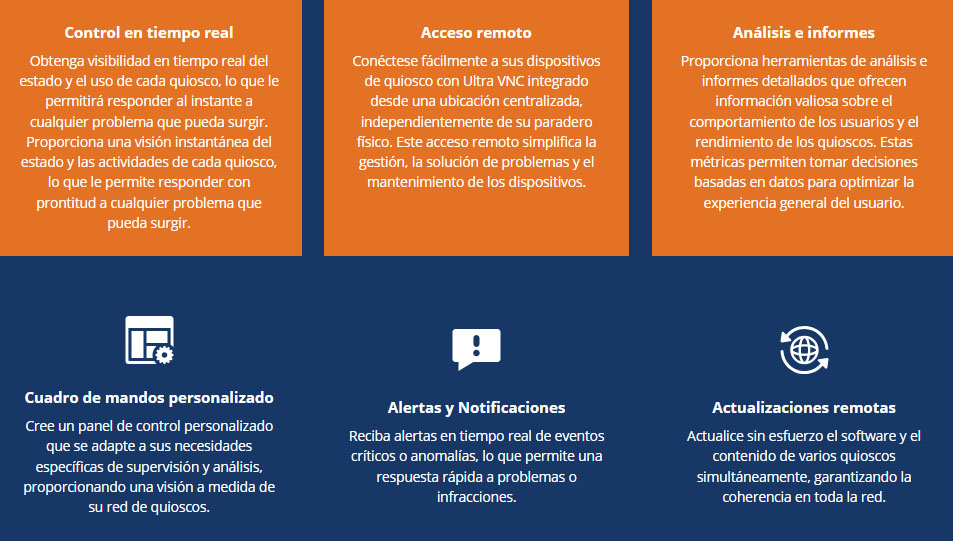 Libere todo el potencial de sus kioscos y tome el control de la experiencia de los usuarios con las diversas funciones de gestión a su alcance.