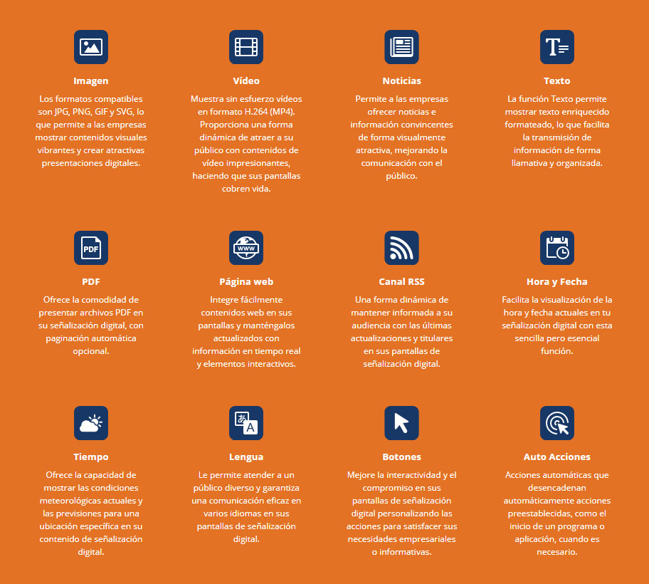 • Diversos elementos de contenido: PDF, vídeos, imágenes, textos, etc.